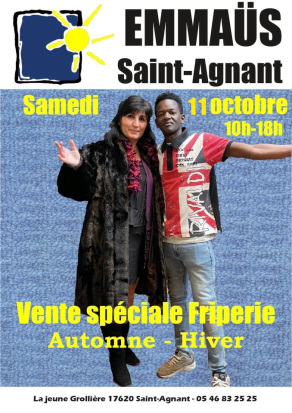à Emmaüs Saint Agnant, 23 rue de la Grollière 17620 Saint Agnant